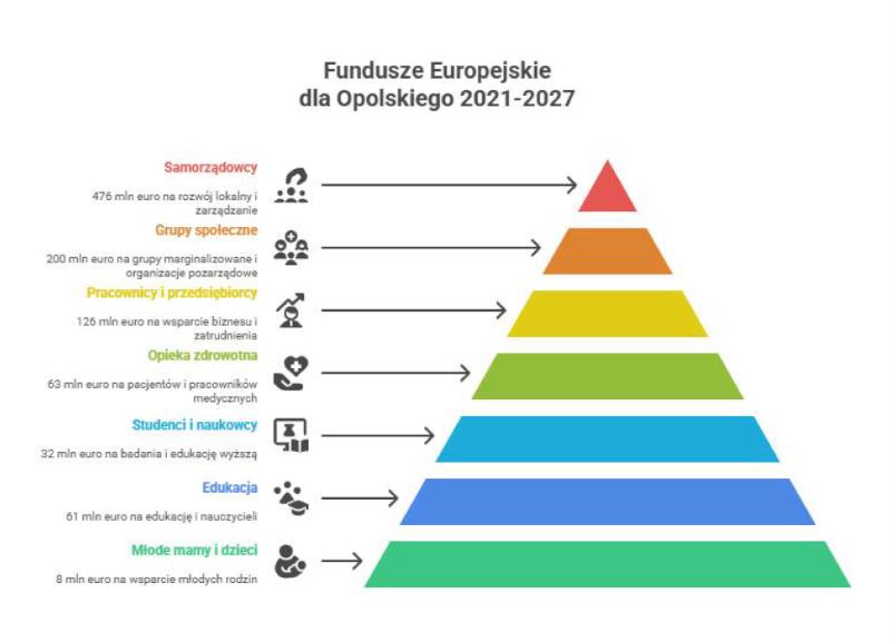 W poprzedniej perspektywie (2014–2020) region zainwestował ponad 4 mld zł z UE. Wspierano m.in. rynek pracy, opiekę zdrowotną, transport i innowacje. W nowej perspektywie Opolskie ma już zaplanowane działania za niemal 5 mld zł – od e-usług publicznych, przez rewitalizację miast, po inwestycje w zieloną energię.