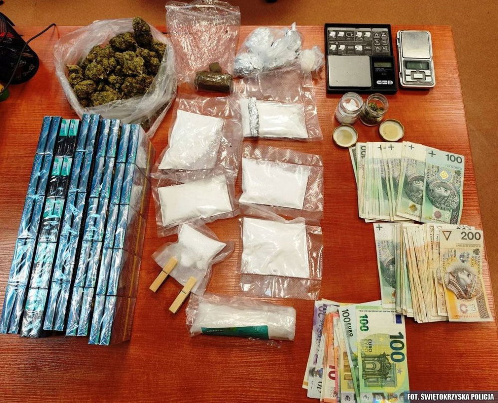 We wtorkowe popołudnie funkcjonariusze Wydziału do walki z Przestępczością Narkotykową kieleckiej komendy miejskiej zatrzymali 44-letniego mieszkańca Kielc. W trakcie przeszukania mieszkania policjanci zabezpieczyli 300 gramów kokainy 120 gramów marihuany 30 gramów haszyszu oraz 2 gramy 4CMC. Narkotyki były przechowywane w kilku miejscach i częściowo przygotowane do porcjowania. Zabezpieczone środki zostaną poddane badaniom laboratoryjnym.