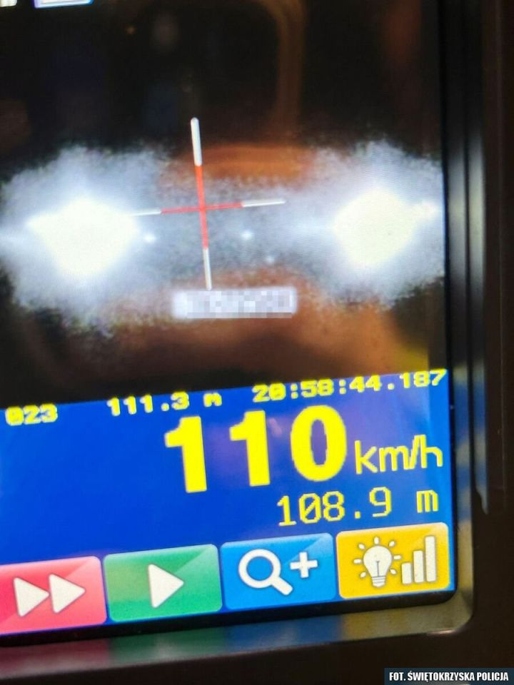 Mundurowi z kieleckiej policji zatrzymali prawo jazdy 43-letniej kierującej, która na drodze wojewódzkiej 762 w Zagrodach poruszała się 110 km/h w miejscu z ograniczeniem do 50 km/h; ukarano ją mandatem 1500 zł i 13 punktami karnymi.