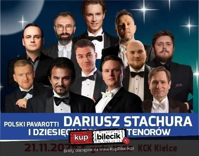 Usłyszymy najpiękniejsze światowe przeboje, utwory i pieśni neapolitańskie, najchętniej śpiewane przez Luciano Pavarottiego. Takiego koncertu w Kielcach jeszcze nie było!!! Wysoki poziom i pomysłowość scenicznych układów wokalnych zapewni wybitny polski tenor Dariusz Stachura- nazywany ,,Polskim Pavarottim". Zresztą obaj artyści w 1966r. poznali się na scenie Teatru Muzycznego w Turynie, w trakcie obchodów stulecia premiery ,,Cyganerii" G. Pucciniego. Wtedy Dariusz Stachura, jako jedyny obcokrajowiec i pierwszy dubler Pavarottiego, kreował na zmianę z Mistrzem, partię Rudolfa w ,,La Boheme". Wówczas Lucciano Pavarotti gratulował Dariuszowi Stachurze świetnej techniki i wspaniałego głosu a także włoskiego temperamentu. Mówił o nim: ,,GRANDE TENORE POLACCO !"