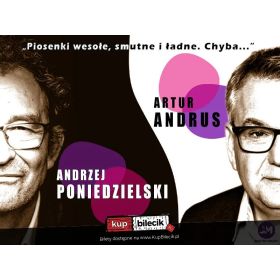 bilety: Andrzej Poniedzielski i Artur Andrus. Piosenki wesołe, ładne i smutne. Chyba... Paweł Jabłoński - piano Tomasz Piątek - klarnet Jakub Chmielarski - gitara Bilety do nabycia na: KupBilecik.plAndrzej Poniedzielski i Artur Andrus artyści: Andrzej Poniedzielski, Artur AndrusAndrzej Poniedzielski - polski poeta, pieśniarz, konferansjer, autor tekstów piosenek, satyryk, humorysta, gitarzysta, twórca scenariuszy, reżyser, artysta kabaretowy i aktor. Członek Akademii Fonograficznej Związek Producentów Audio-Video (ZPAV). Mistrz Mowy Polskiej. Artur Józef Andrus - polski dziennikarz i prezenter telewizyjny i radiowy, aktor, pisarz, poeta, autor tekstów piosenek, piosenkarz, artysta kabaretowy i konferansjer. Bilety do nabycia na: KupBilecik.pl |