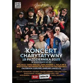 19 października 2025 r. w Targi Kielce S.A. od godz. 14.00-22.00 spotkamy się na wyjątkowym koncercie charytatywnym z udziałem największych gwiazd polskiej sceny muzycznej. To niezwykła okazja, by spędzić niezapomniany dzień i jednocześnie pomóc - cały dochód z wydarzenia zostanie przeznaczony na budowę nowego Hospicjum Dziecięcego w Kielcach. Bilety do nabycia na: