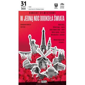 bilety: Koncert "W Jedną Noc Dookoła Świata". Niezwykła muzyczna podróż, która przenosi publiczność przez rozmaite kultury muzyczne, prezentując brzmienia z różnych stron świata, w tym muzykę polską, francuską, hiszpańską, meksykańską, argentyńską, grecką, włoską... Koncert Sylwestrowy "W jedną noc dookoła świata" artyści: Warsaw Impressione Orchestra, Milena Lange Judyta Nowak-Labuń, Michał Janicki, Weronika Sura i inniKoncert "W Jedną Noc Dookoła Świata". Niezwykła muzyczna podróż, która przenosi publiczność przez rozmaite kultury muzyczne, prezentując brzmienia z różnych stron świata, w tym muzykę polską, francuską, hiszpańską, meksykańską, argentyńską, grecką, włoską... W programie znajdą się najpiękniejsze arie i duety z oper, operetek i musicali, popularne piosenki oraz muzyka filmowa. Bilety do nabycia na: KupBilecik.pl |