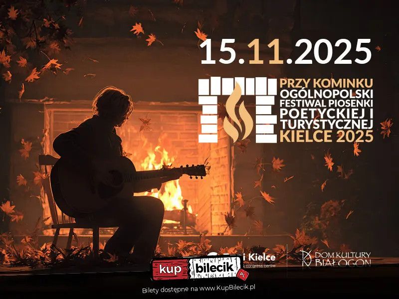 | Festiwal "Przy Kominku" - klimatyczny wieczór z muzyką na żywododano 2025-10-10 12:24:35 Zapraszamy Cię na wyjątkowy, muzyczny wieczór w kameralnej atmosferze. Na jednej scenie w Centrum Kongresowym Targów Kielce wystąpią trzy zespoły, które od lat budują klimat polskiej piosenki autorskiej i turystycznej: Festiwal "Przy Kominku" artyści: Tomek Jarmużewski, Jan Błyszczak „Mufka”, grupa Bez IdolaZapraszamy Cię na wyjątkowy, muzyczny wieczór w kameralnej atmosferze. Na jednej scenie w Centrum Kongresowym Targów Kielce wystąpią trzy zespoły, które od lat budują klimat polskiej piosenki autorskiej i turystycznej. Festiwal „Przy Kominku” to nie tylko koncerty – to także okazja do rozmów i wspólnego muzykowania z artystami. Po koncercie artyści spotkają się z widzami, by razem z nimi porozmawiać, wspólnie zagrać i celebrować wyjątkowy muzyczny wieczór. Organizatorzy zachęcają, aby zabrać ze sobą gitary i inne instrumenty, by razem stworzyć niepowtarzalny klimat jesiennego spotkania przy muzyce. Obok festiwalu w Centrum Kongresowym od rana trwać będą Targi Rzeczy Handmade – pełne inspiracji, rękodzieła i unikatowych przedmiotów tworzonych z pasją. Bilety do nabycia na: KupBilecik.pl |