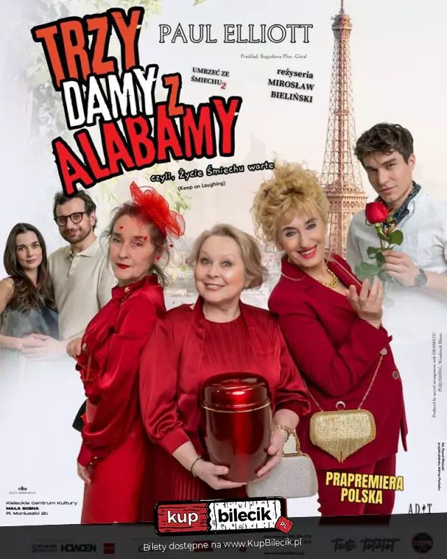 bilety: Kontynuacja wielkiego hitu komediowego "Umrzeć ze Śmiechu", który wystawiliśmy w 2018 roku! Przedstawiamy Wam drugą część przygód Connie, Millie i Leny! Zapraszamy na Polską Prapremierę! Wróciły! Trzy Damy z Alabamy są tak samo szalone i zabawne jak dawniej! Teraz powracają z jeszcze większym rozmachem i jeszcze większymi niespodziankami! Kiedy ostatnio je widzieliśmy, Connie, Millie i Lena wyjeżdżały w podróż dookoła świata za sprawą swojej zmarłej przyjaciółki Mary, która nakazała im korzystać z życia! Oczywiście nie mogły wyruszyć na podbój świata bez niej, a raczej urny z jej prochami! Jedno jest pewne - bawiły się świetnie! Teraz wracają, żeby opowiedzieć o swoich przygodach… Ale tym razem jedna z nich wymknęła się spod kontroli. Rozsądna Connie wróciła z większym "bagażem" niż z tym, z którym wyjeżdżała. Na dodatek córka Connie, Rachel wyszła za mąż za swojego przyjaciela Bobby"ego, (którego poznaliśmy w "Umrzeć ze śmiechu" jako policjanta - striptizera, wynajętego przez Mary). Ich rodzina niebawem się powiększy... Przyjdź i poznaj historię, dzięki której zobaczysz, ile zabawy można mieć, jeśli spojrzysz na życie w inny sposób! Uwaga! Spektakl można obejrzeć bez znajomości pierwszej części - to zupełnie nowa historia, która bawi od początku do końca! Autor: Paul Elliott Tłumaczenie: Bogusława Plisz-Góral Reżyseria: Mirosław Bieliński Scenografia: Iwona Jamka Projekcje: Przemysław Żmiejko Obsada: Connie - Teresa Bielińska Millie - Ewa Pająk Lena - Małgorzata Oracz Rachel - Magdalena Daniel/ Magda Szczepanek Bobby - Łukasz Oleś Michel - Mateusz Dymidziuk Bilety do nabycia na: KupBilecik.plTrzy damy z Alabamy - Teatr TeTaTeT artyści: Teresa Bielińska, Ewa Pająk, Małgorzata Oracz, Magdalena Daniel/ Magda Szczepanek i inniWróciły! Trzy Damy z Alabamy są tak samo szalone i zabawne jak dawniej! Teraz powracają z jeszcze większym rozmachem i jeszcze większymi niespodziankami! Kiedy ostatnio je widzieliśmy, Connie, Millie i Lena wyjeżdżały w podróż dookoła świata za sprawą swojej zmarłej przyjaciółki Mary, która nakazała im korzystać z życia! Oczywiście nie mogły wyruszyć na podbój świata bez niej, a raczej urny z jej prochami! Jedno jest pewne - bawiły się świetnie! Teraz wracają, żeby opowiedzieć o swoich przygodach… Ale tym razem jedna z nich wymknęła się spod kontroli. Rozsądna Connie wróciła z większym "bagażem" niż z tym, z którym wyjeżdżała. Na dodatek córka Connie, Rachel wyszła za mąż za swojego przyjaciela Bobby"ego, (którego poznaliśmy w "Umrzeć ze śmiechu" jako policjanta - striptizera, wynajętego przez Mary). Ich rodzina niebawem się powiększy... Bilety do nabycia na: KupBilecik.pl |