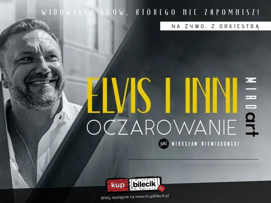 bilety: "Elvis i Inni - OCZAROWANIE" - niezapomniany wieczór z Mirosławem Niewiadomskim. Mirosław Niewiadomski - "Elvis i Inni - Oczarowanie" artyści: Mirosław NiewiadomskiDołącz do nas na najnowszej trasie koncertowej "Elvis i Inni - OCZAROWANIE", gdzie jeden z najlepszych polskich interpretatorów Elvisa Presleya i Franka Sinatry oczaruje Cię swoim niepowtarzalnym ciemnym tembrem głosu i niebywałą kreacją sceniczną. Jego występy to prawdziwe show, niepokorny, przyciągający uwagę artysta z wdziękiem i niebywałą charyzmą zabierze Cię w emocjonującą podróż pełną wzruszeń i niezapomnianych chwil. W towarzystwie profesjonalnego, pięcioosobowego bandu, Mirosław tworzy atmosferę pełną magii i muzycznego kunsztu. Koncert podzielony na dwie części, gdzie druga połowa składa się wyłącznie z utworów w języku polskim. Bilety do nabycia na: KupBilecik.pl |