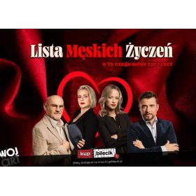 bilety: "Lista Męskich Życzeń" - komedia, którą trzeba zobaczyć, zanim spełni się Twoje marzenie! Czy partner idealny naprawdę istnieje? A jeśli tak… czy na pewno byśmy go chcieli? Wyobraź sobie, że możesz stworzyć drugą połówkę dokładnie taką, jakiej pragniesz. Bez kompromisów. Bez wad. Bez zaskoczeń. Bill - rozwiedziony, poukładany statystyk - dostaje od przyjaciela urodzinowy prezent, który zmienia wszystko. W jego życiu pojawia się Justin. Spełnienie męskich marzeń. Idealna partnerka. Zawsze taka, jak trzeba. Mówi to, co powinna. Reaguje tak, jak oczekujemy. Jest dokładnie tym, czego w danej chwili potrzebujemy. Brzmi perfekcyjnie? No właśnie. Bo kiedy marzenia zaczynają się spełniać zbyt dosłownie, robi się… niebezpiecznie zabawnie. "Lista Męskich Życzeń" to błyskotliwa komedia o naszych wyobrażeniach, potrzebach i iluzjach, które sami budujemy. To dwie godziny śmiechu, zaskoczeń i momentów, w których nagle łapiemy się na myśli: "To przecież o mnie!" Bilety do nabycia na: KupBilecik.plLista męskich życzeń artyści: A. Barciś, W. Obłoza, K. Kuszewski, A. Zając, U. DębskaCzy marzyliście kiedykolwiek o partnerze idealnym? Chcielibyście móc na bieżąco zmieniać jego cechy, dopasowując go do swoich oczekiwań? Czy ucieszylibyście się, gdyby ta wyśniona druga połówka sama Was odnalazła? Jeżeli odpowiedzieliście “tak!" na którekolwiek z powyższych pytań, to zapraszamy na „Listę męskich życzeń”. Przezabawną komedię, w której nic nie wydaje się być oczywistym, zaś wszystko jest absolutnie upragnionym. Bill, rozwiedziony nudny statystyk, otrzymuje od swojego przyjaciela nieoczekiwany prezent urodzinowy, który wprowadzi wiele zamieszania do życia przyjaciół. Żaden z nich jednakowoż nie śmiał nawet przypuszczać, jak ta bajka się rozwinie. A takiego zakończenia nikt by się nie spodziewał! Bilety do nabycia na: KupBilecik.pl |